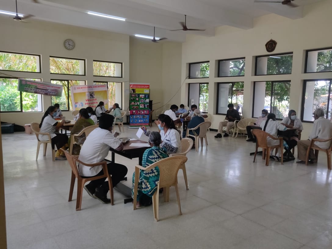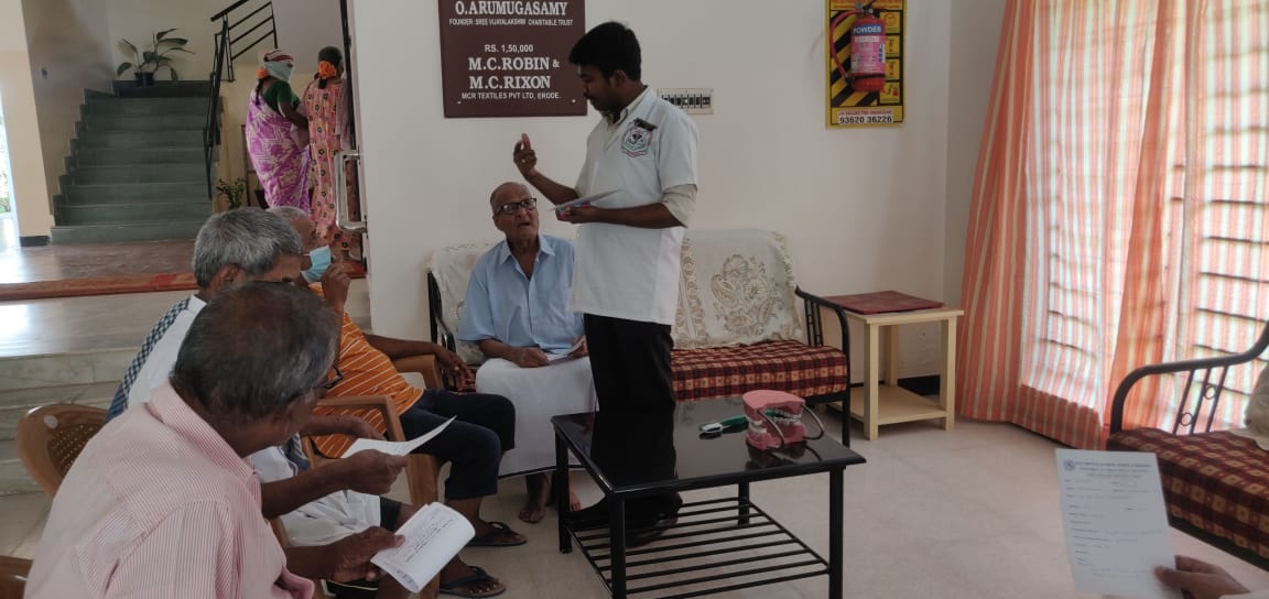 In view of the World Health Day, the Department of Public Health Dentistry in association with Lions Club, Erode Midtown, organized a camp for the elderly on Wednesday, 7th April 2021. The camp was conducted in Lions Club Old Age Home, Perundurai. Around 95 people were screened for oral diseases and a health awareness speech was given on maintenance of oral health.